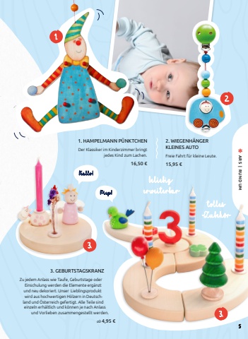 2. WIEGENH%u00c4NGER KLEINES AUTOFreie Fahrt f%u00fcr kleine Leute.15,95 %u20ac1. HAMPELMANN P%u00dcNKTCHENDer Klassiker im Kinderzimmer bringt jedes Kind zum Lachen. 16,50 %u20ac3. GEBURTSTAGSKRANZZu jedem Anlass wie Taufe, Geburtstage oder Einschulung werden die Elemente erg%u00e4nzt und neu dekoriert. Unser Lieblingsprodukt wird aus hochwertigen H%u00f6lzern in Deutschland und %u00d6sterreich gefertigt. Alle Teile sind einzeln erh%u00e4ltlich und k%u00f6nnen je nach Anlass und Vorlieben zusammengestellt werden.ab 4,95 %u20acPiep!Hallo!beliebig erweiterbartolles Zubeh%u00f6r2.1.3.3.5 ARS | RUNDUM