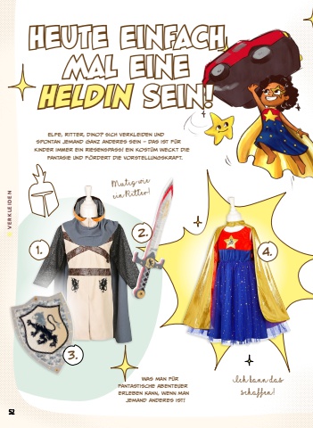 Elfe, Ritter, Dino? Sich verkleiden undspontan jemand ganz anderes sein %u2013 das ist f%u00fcr Kinder immer ein Riesenspa%u00df! Ein Kost%u00fcm weckt dieFantasie und f%u00f6rdert die Vorstellungskraft. Ich kann das schaffen!HEUTE EINFACHMAL EINE HELDIN SEIN!1.4.3.Mutig wie ein Ritter!2. Was man f%u00fcr fantastische Abenteuer erleben kann, wenn man jemand anderes ist! 52VERKLEIDEN